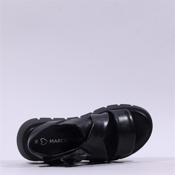 Embrace elegance and comfort with the Marco Tozzi Merizzo Cross Strap Buckle - Black sandals, a must-have addition to your wardrobe this season!