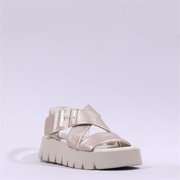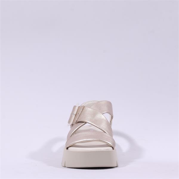 Embrace elegance and comfort with the Marco Tozzi Merizzo Cross Strap Buckle - Platinum sandals, a must-have addition to your wardrobe this season!