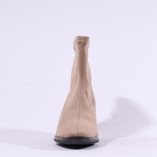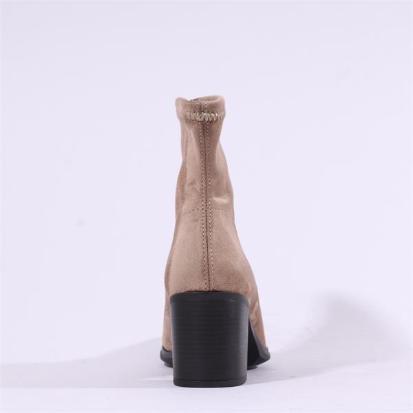 Miss Elastic Block Heel Ankle Boot - Taupe Stretch
