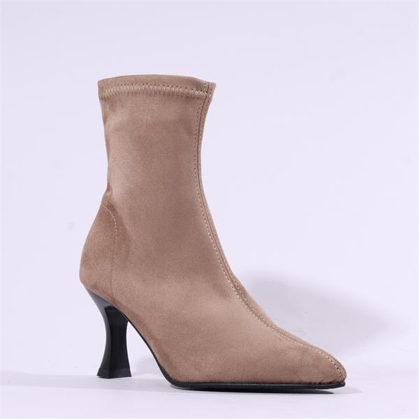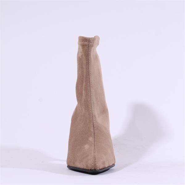Miss Elastic High Heel Point Ankle Boot - Stone
