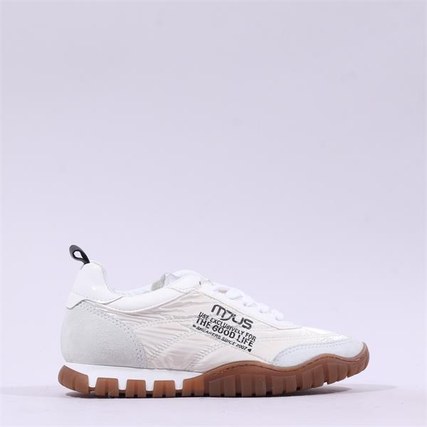 Mjus Nylon Retro Laced Print Trainer - Off White
