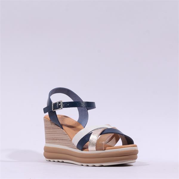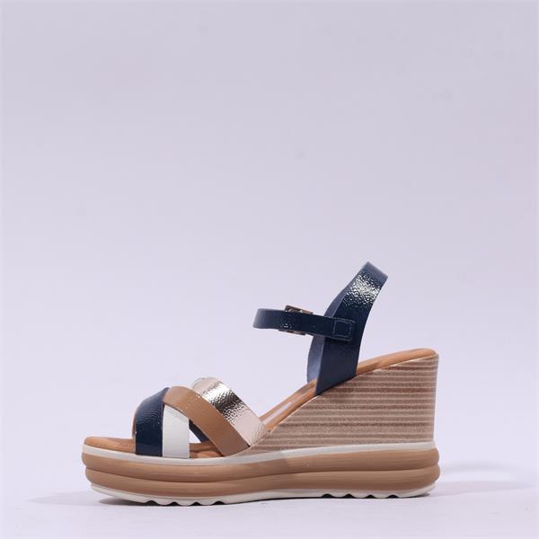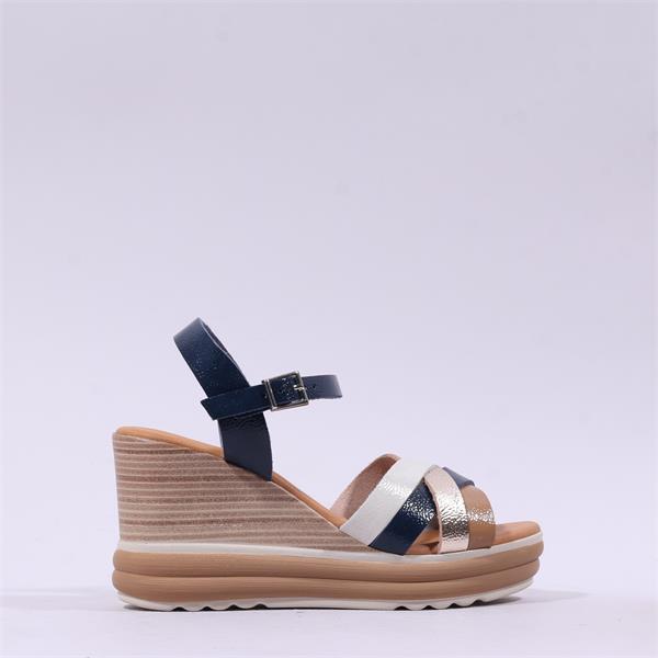 Oh My Sandals Strappy High Wedge - Navy Metallic Combi
