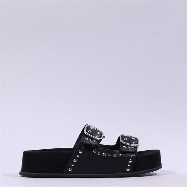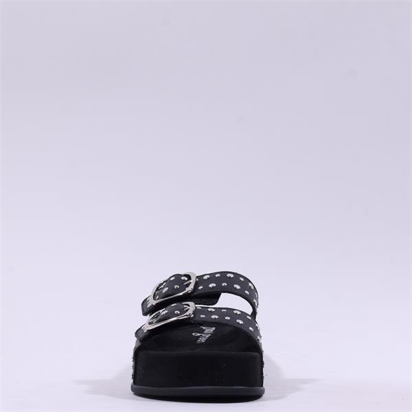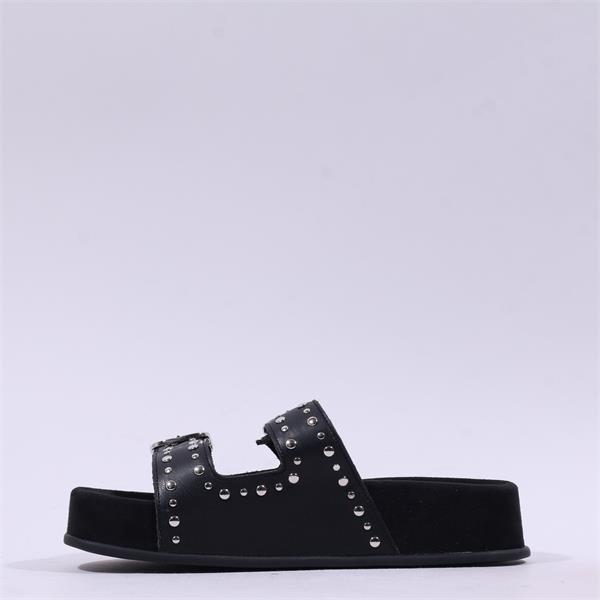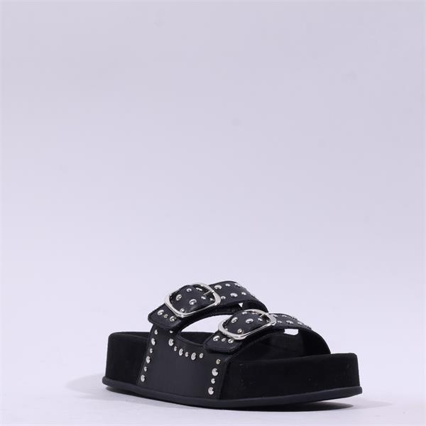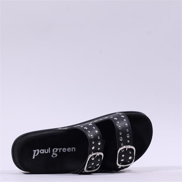 Paul Green 2 Strap Studded Mule Sandal - Black Leather