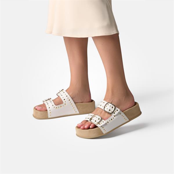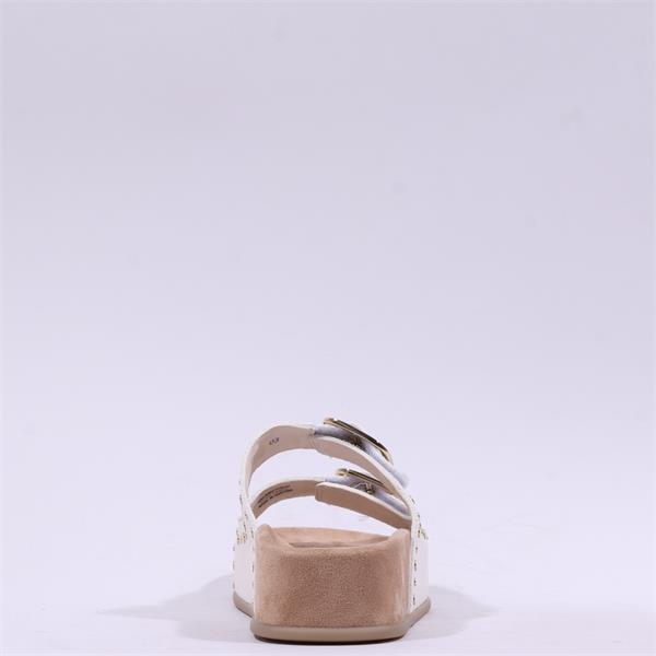 Paul Green 2 Strap Studded Mule Sandal - Off White Gold