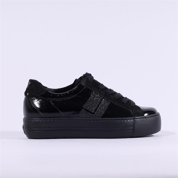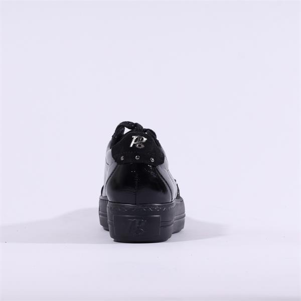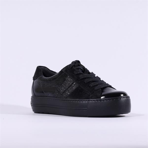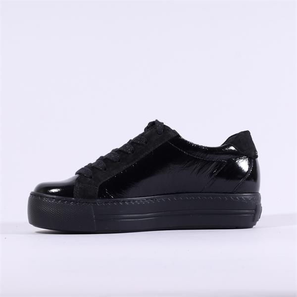 Paul Green Side Panel Laced Trainer - Black Patent