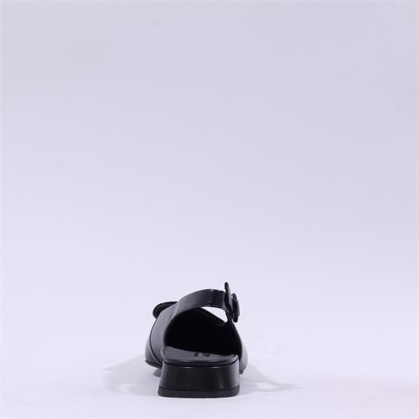 Made from soft, smooth black leather, the pumps feature a striking detail that adds a distinctive accent to the front, making them a fashionable choice for any occasion. The slender, adjustable ankle strap ensures excellent support, allowing you to wear them all day without discomfort. With a small block heel of 20mm, you can maintain a steady footing while enjoying a touch of elegance.