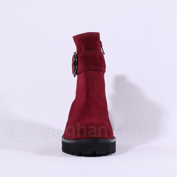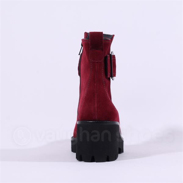 Paul Green Strap Buckle Wedge Heel Boot - Bordeaux Suede