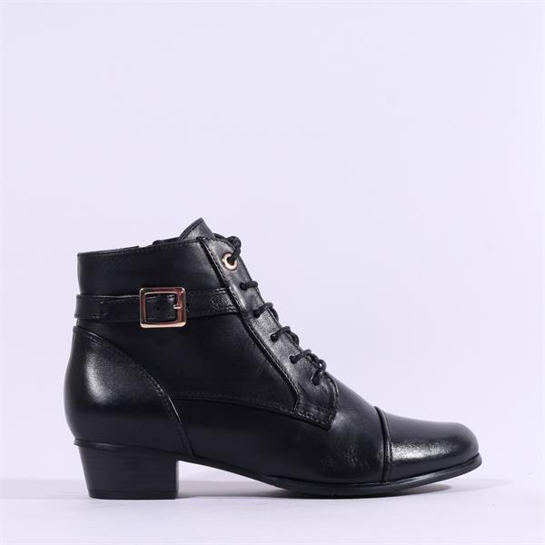 Regarde Le Ciel Low Heel Laced Buckle - Black Leather