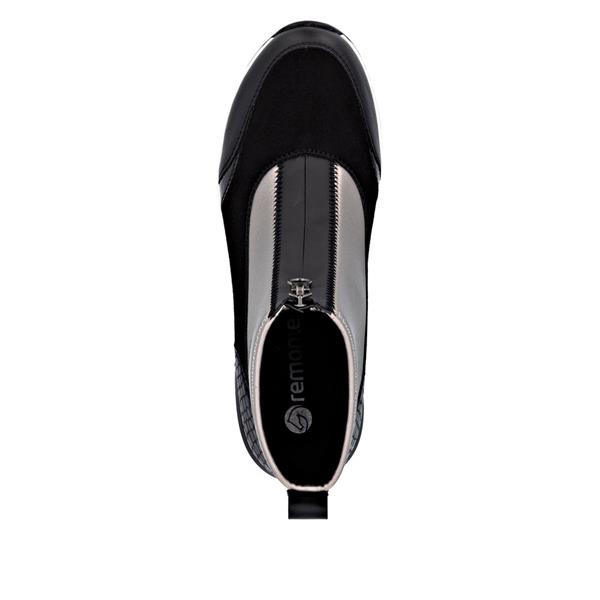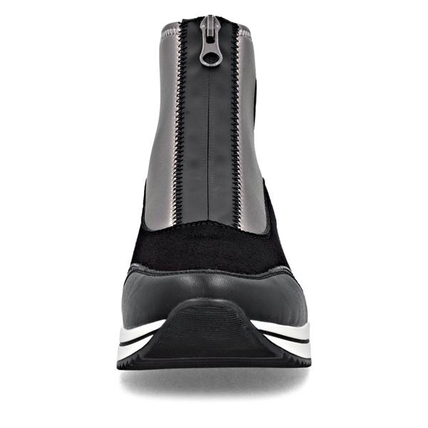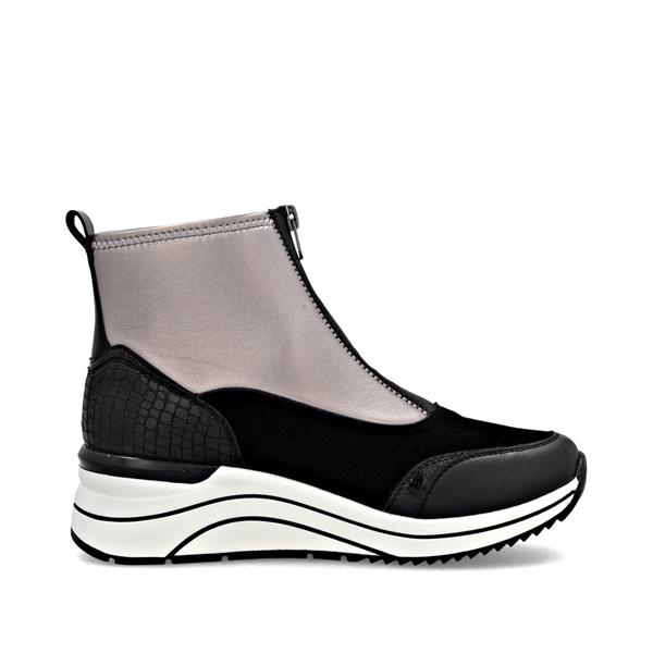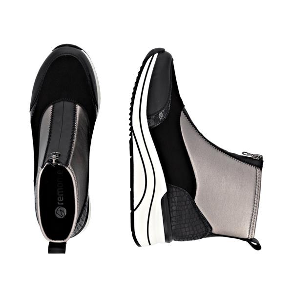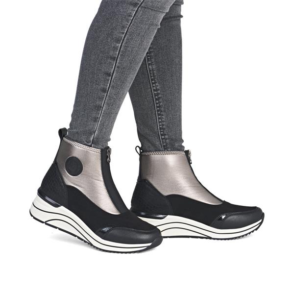 Remonte Front Zip Wedge Ankle Boot - Black Gold