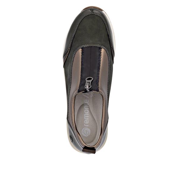 Remonte Front Zip Wedge Trainer - Bronze Green Black