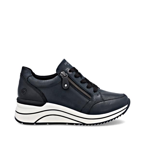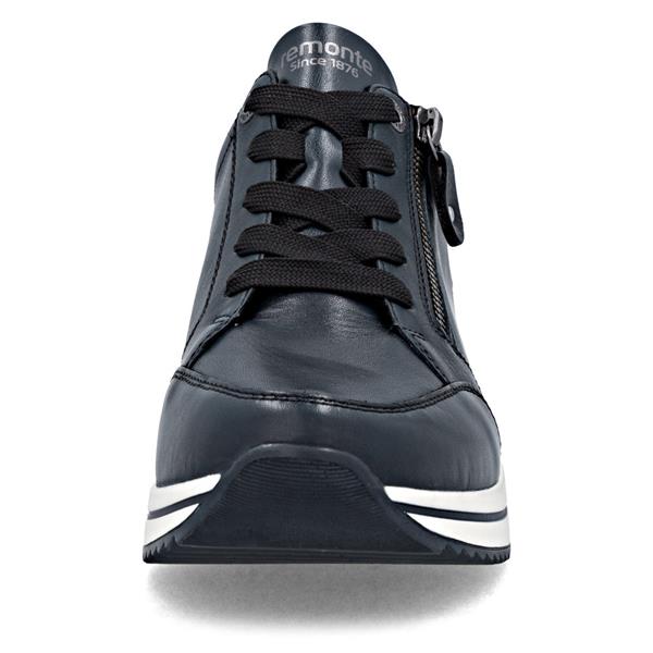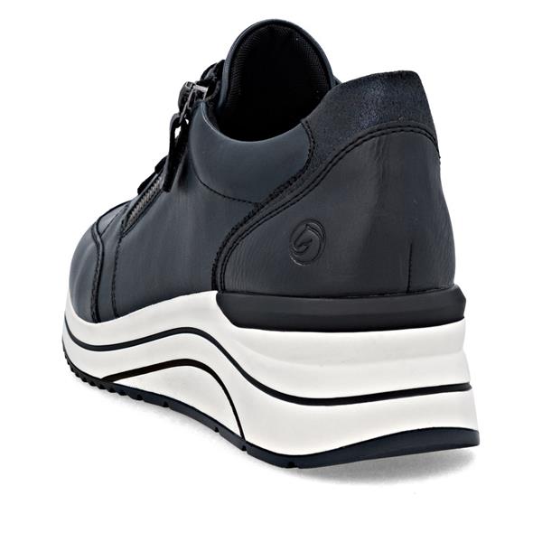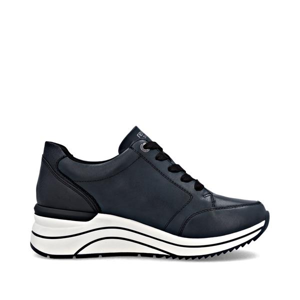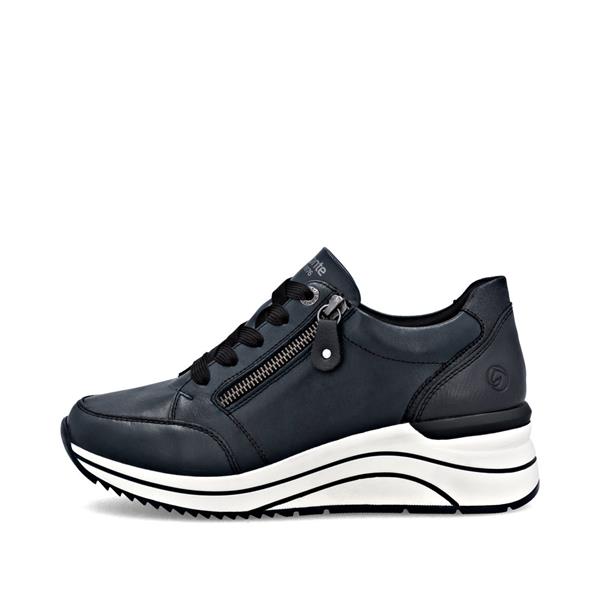 Remonte Lace Wedge Trainer With Side Zip - Navy Leather