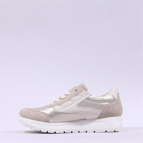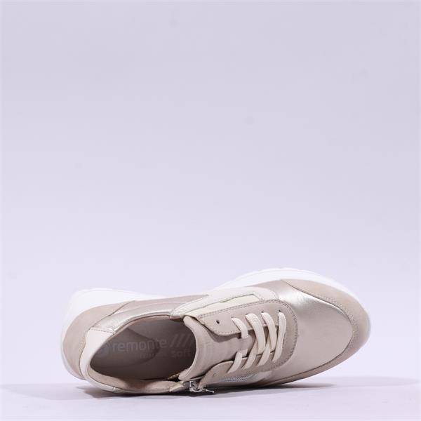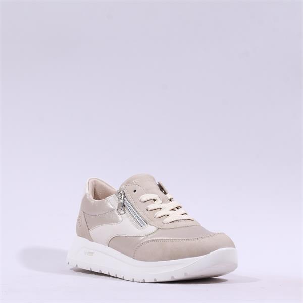 Remonte Low Wedge Laced Side Zip Shoe - Beige Combi