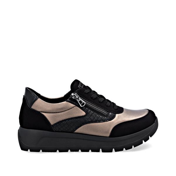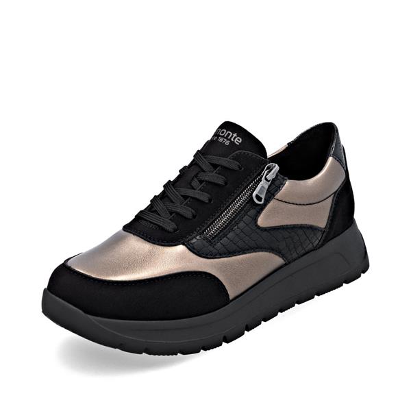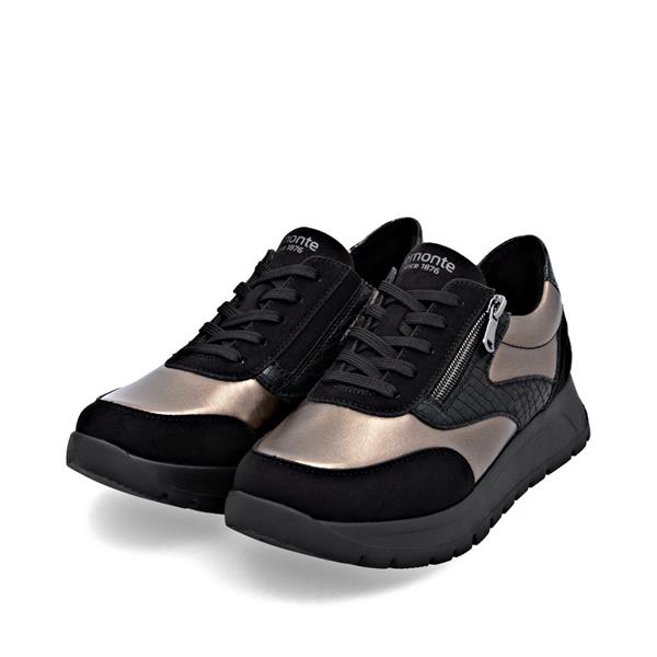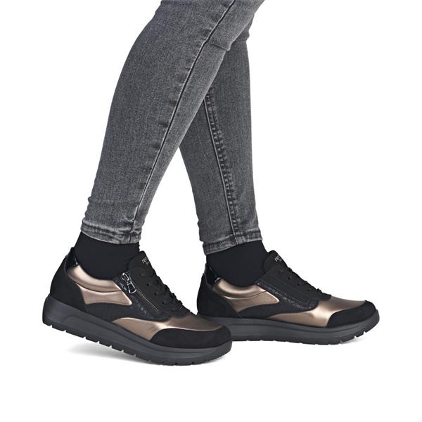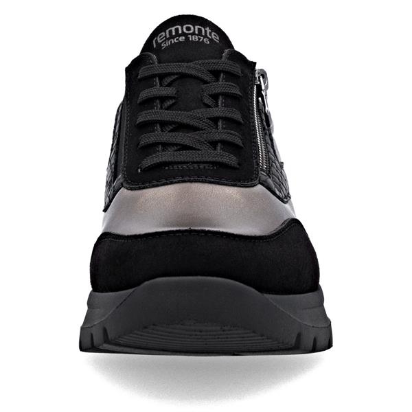 Remonte Low Wedge Laced Side Zip Shoe - Black Bronze Combi
