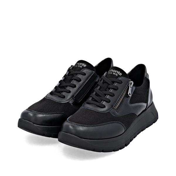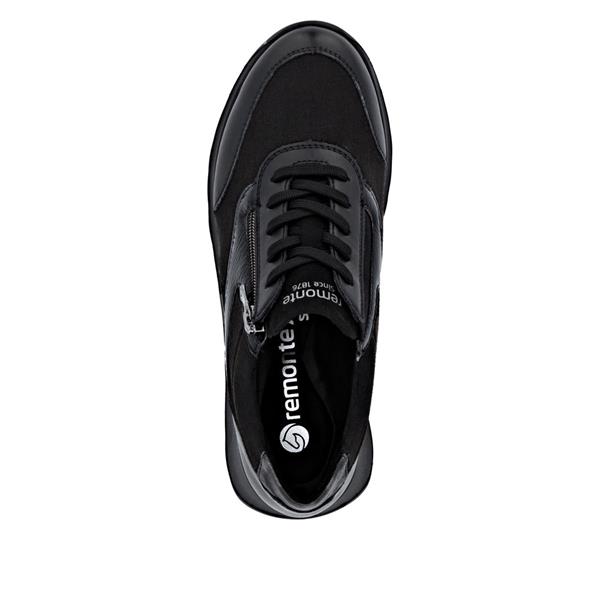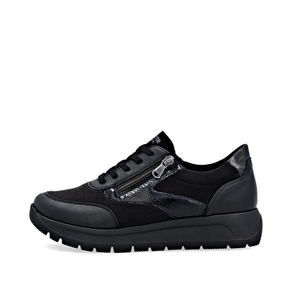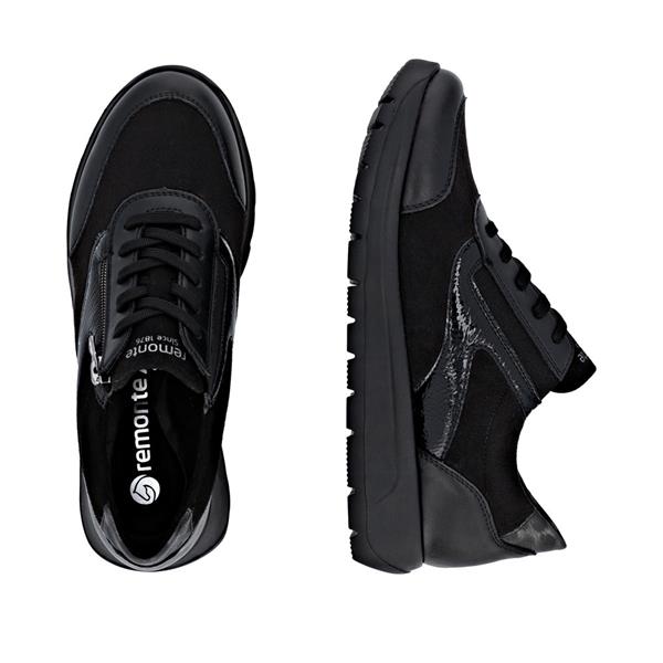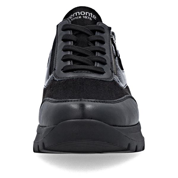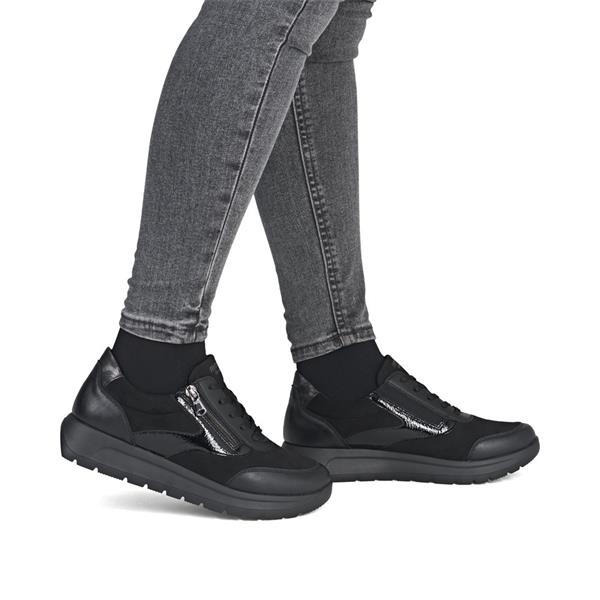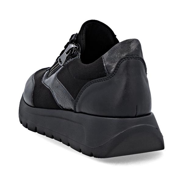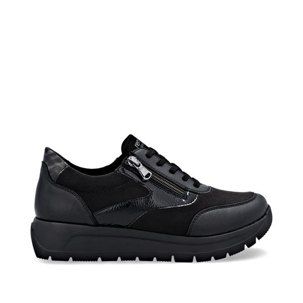 Remonte Low Wedge Laced Side Zip Shoe - Black Combi