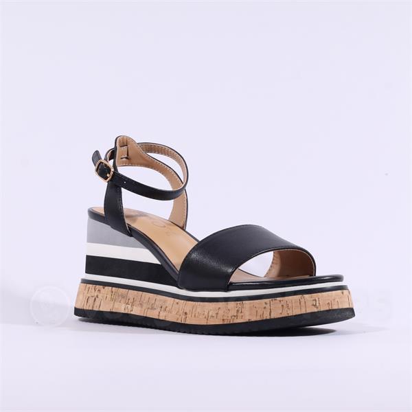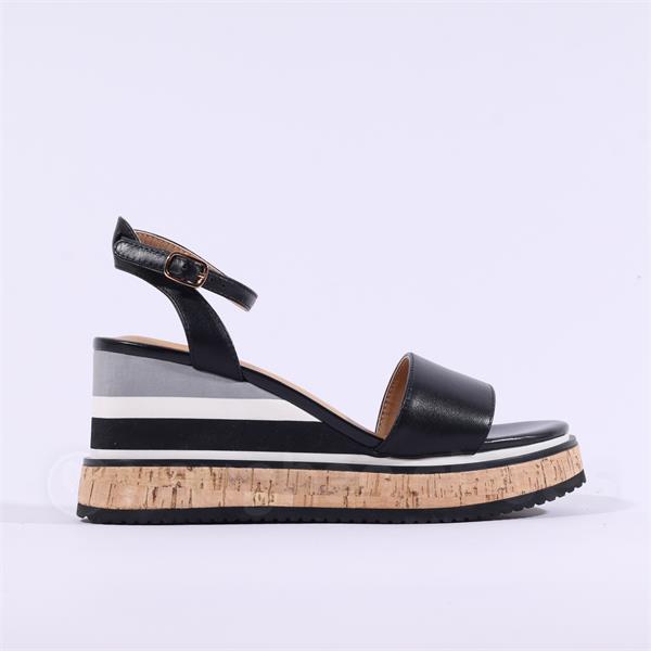 Repo Cork Platform Wedge Sandal - Black Combi
