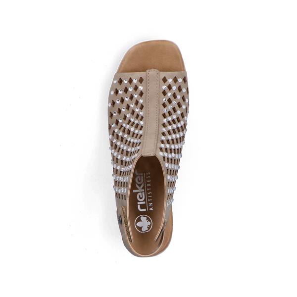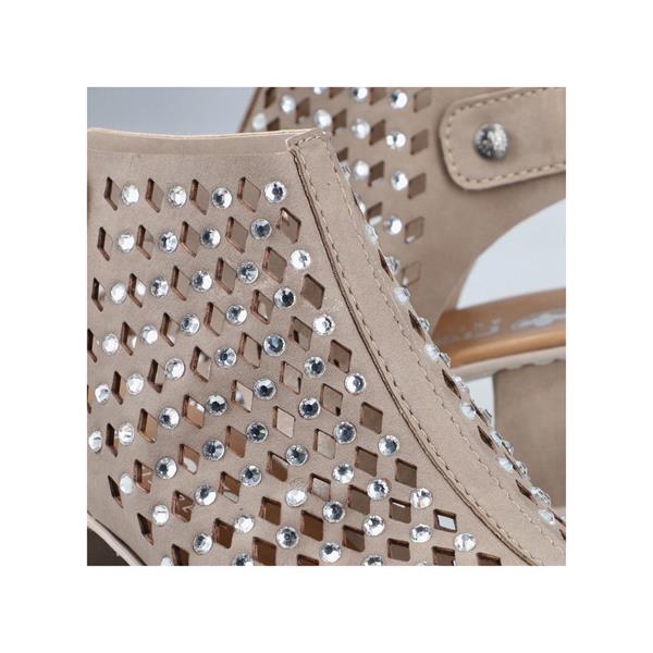 Rieker Diamante Stud Block Heel Sandal - Beige