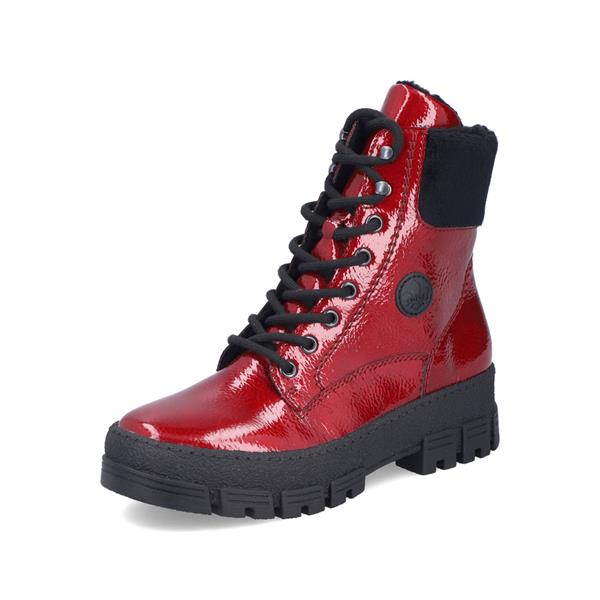 Rieker Platform Fur Cuff Ankle Boot - Red Patent