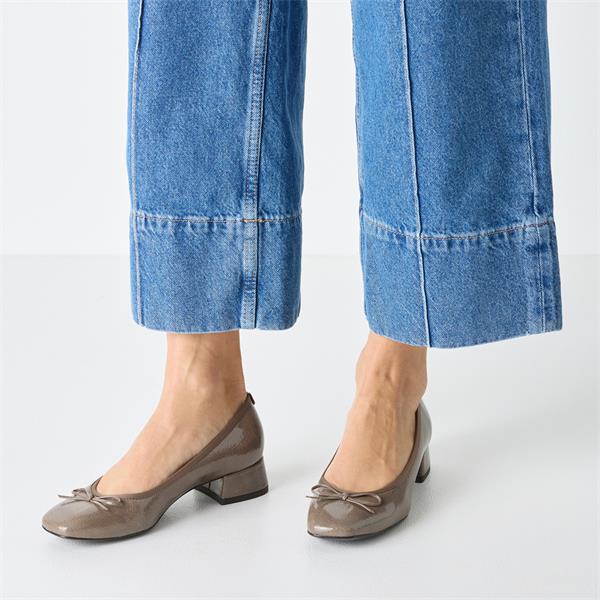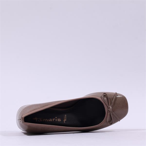 Tamaris Almira Bow Tie Block Heel Pump - Taupe Patent