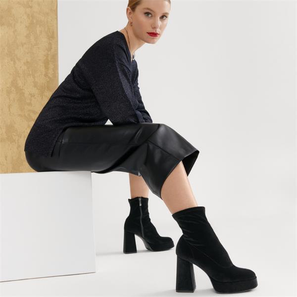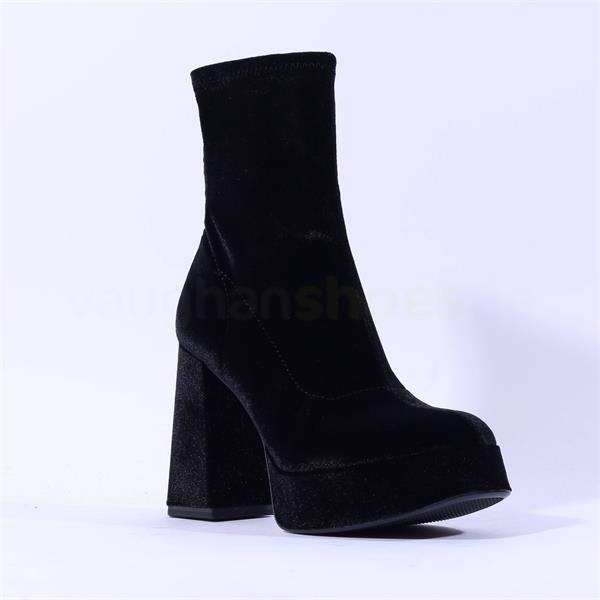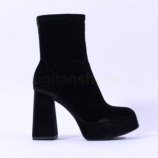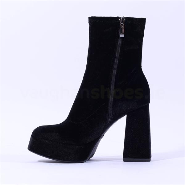 Tamaris Alysha Platform High Block Heel - Black Velour