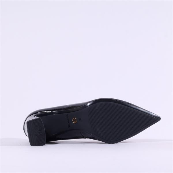 Opt for the Tamaris Aquila Pointed Block High Heel in black and make a bold statement while embracing comfort and sustainability.