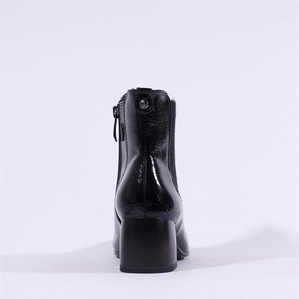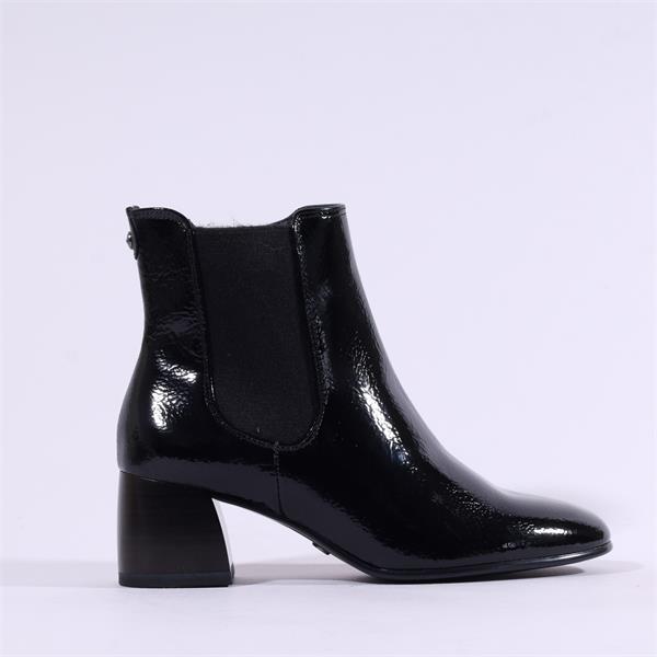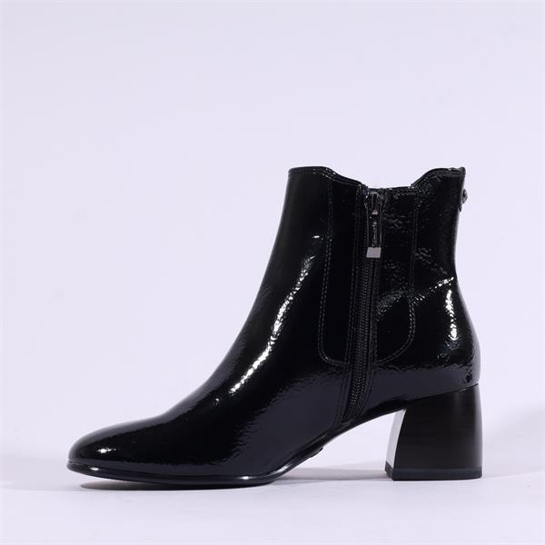 Tamaris Colbie Stack Heel Gusset Boot - Black Patent