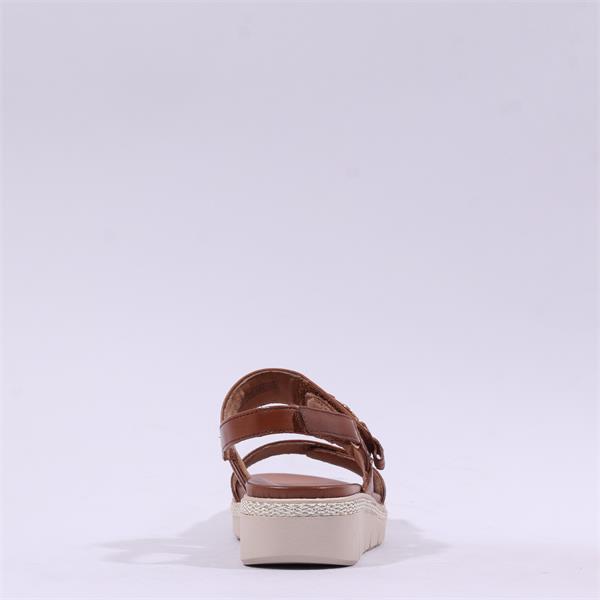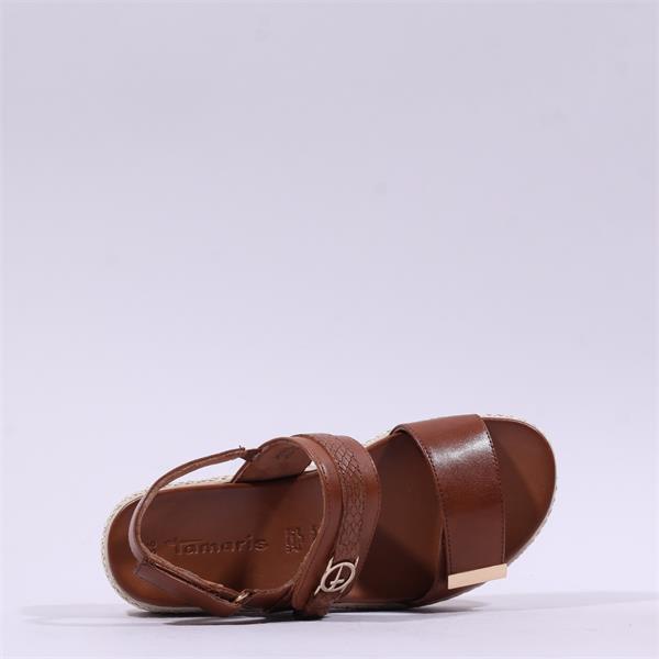 Tamaris Karlie Twin Strap Wedge Sandal - Cognac Leather
