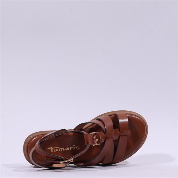 Tamaris Marguerite Strappy Wedge Sandal - Cognac