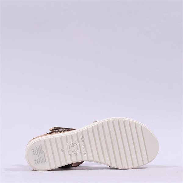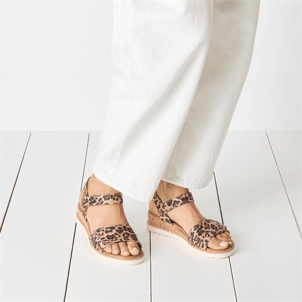 Step into style and comfort with the Tamaris Nirmala Slingback Wedge Sandal - Leopard Print. This fashionable sandal combines elegance with practical design, perfect for any occasion, whether you're heading to a casual outing or a sophisticated soiree.