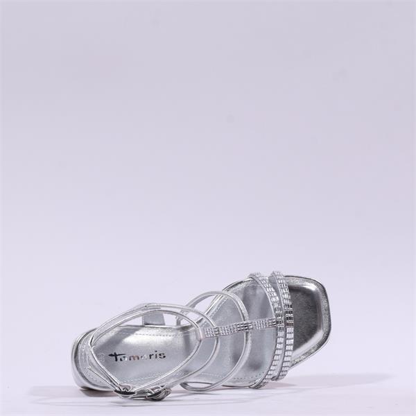 Step into elegance with the Tamaris Shanaia Strappy Block Heel - Silver. This stunning footwear combines style and comfort seamlessly, making it a perfect choice for both special occasions and everyday wear.