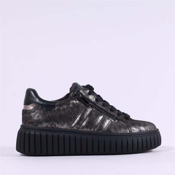 Tamaris Sugar Platform Side Zip Trainer - Metallic Leopard