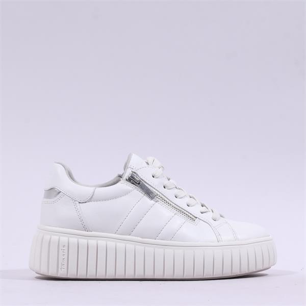 Tamaris Sugar Platform Side Zip Trainer - White Leather