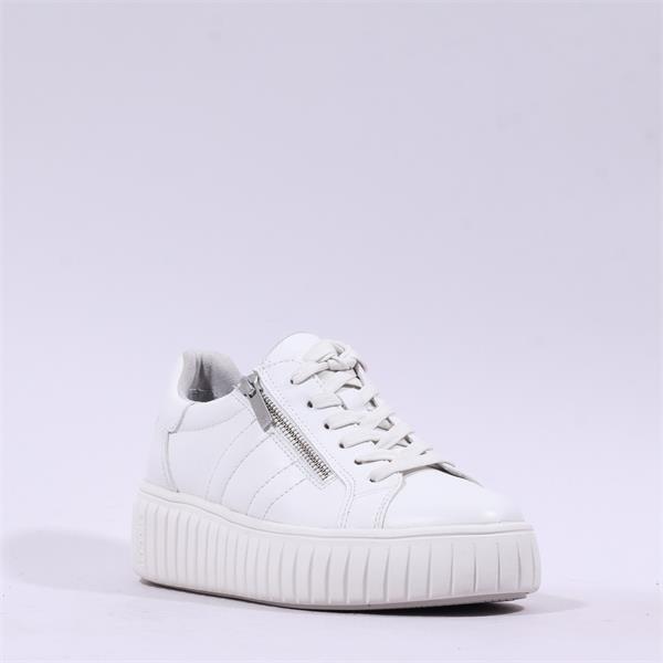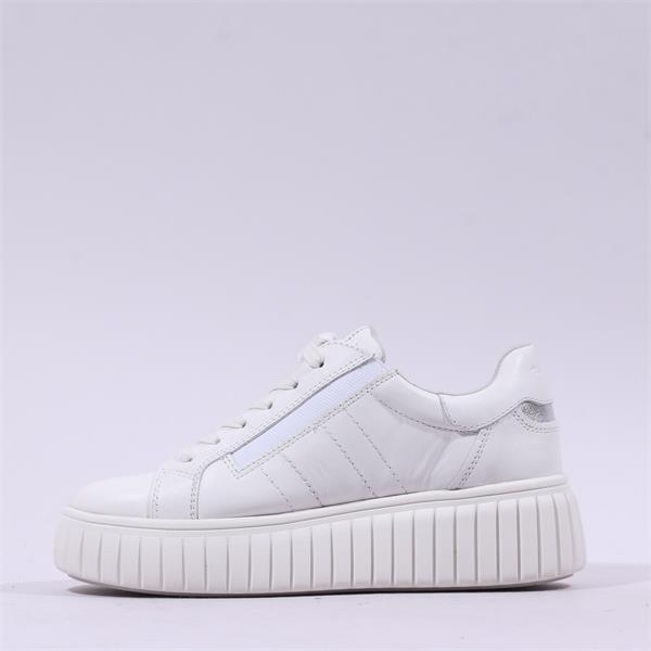 Upgrade your footwear collection with the Tamaris Sugar Platform Side Zip Trainer - White Leather, where comfort meets contemporary design.