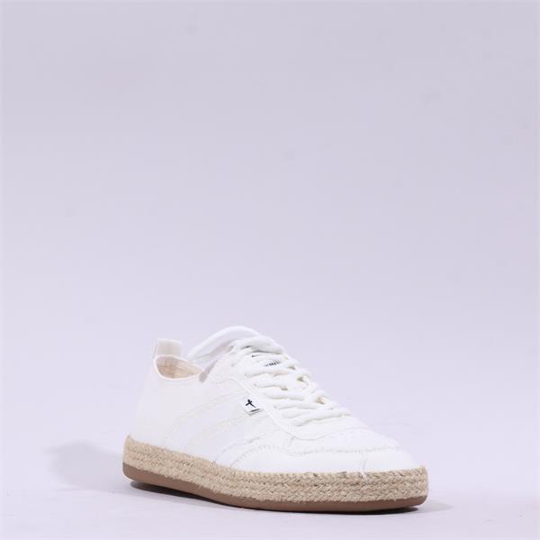 Featuring a canvas style upper, these trainers are lightweight and breathable, perfect for warm weather. The 30mm sole provides a slight lift while ensuring stability, allowing you to walk with confidence all day long. Additionally, the espadrille trim adds a trendy, summery touch that sets them apart from ordinary trainers.