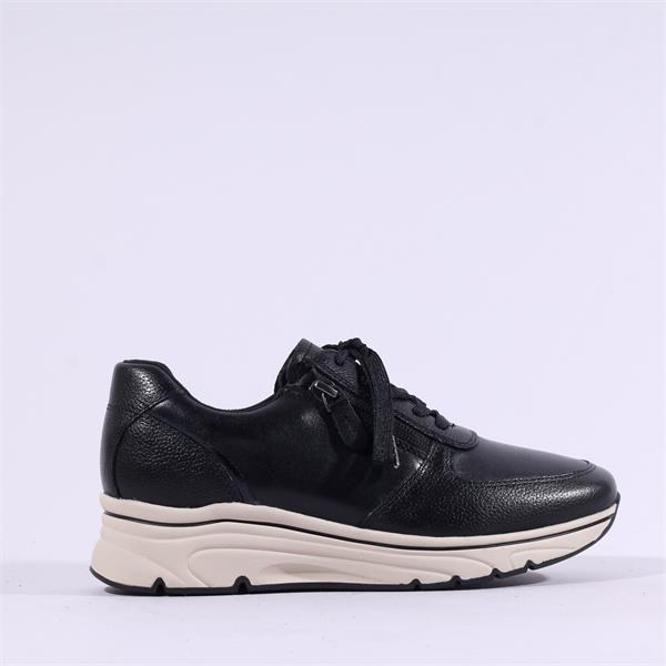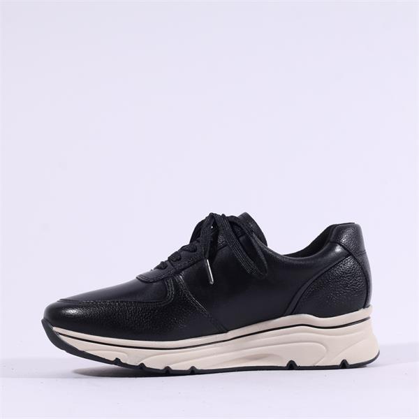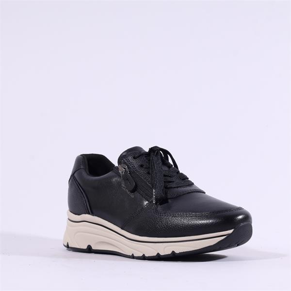 Discover the perfect blend of style and comfort with the Tamaris Vinny Sidezip Lace Wedge Trainer - Black. Crafted with the highest quality standards, this trainer is made from natural leather, ensuring durability while offering a sophisticated look for every occasion.