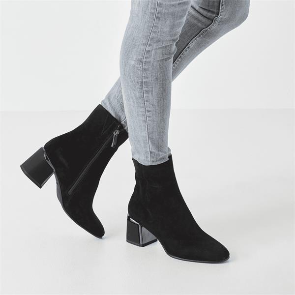 Tamaris Zoi Metallic Heel Ankle Boot - Black Suede