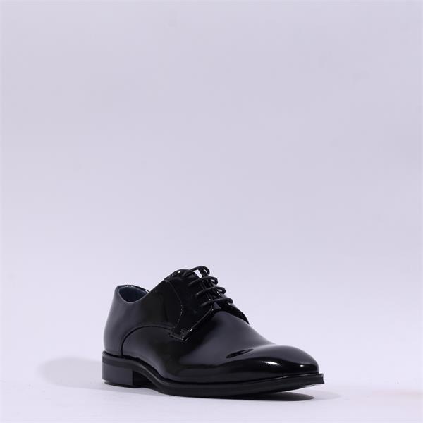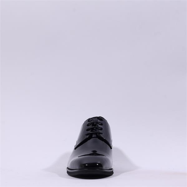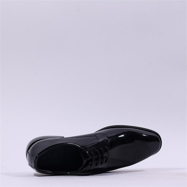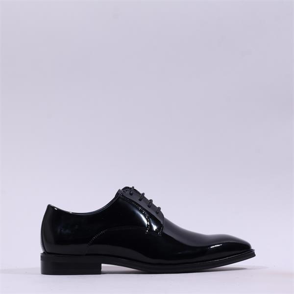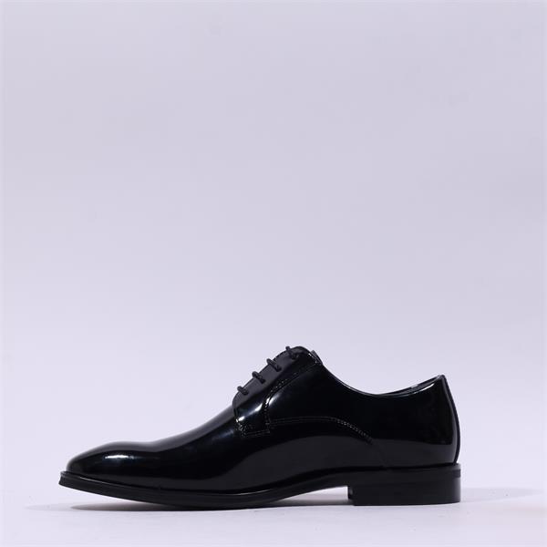 Crafted with a classic derby style, this shoe not only meets the demands of a black tie event but also provides versatility for various dressy occasions. With its sleek black patent finish, it offers an exquisite aesthetic, ensuring you make a memorable impression.