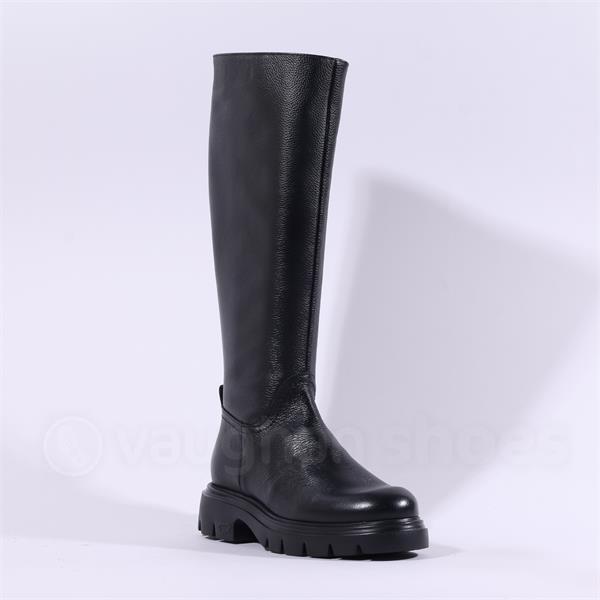Wonders Bones Chunky Sole Knee High - Black Leather