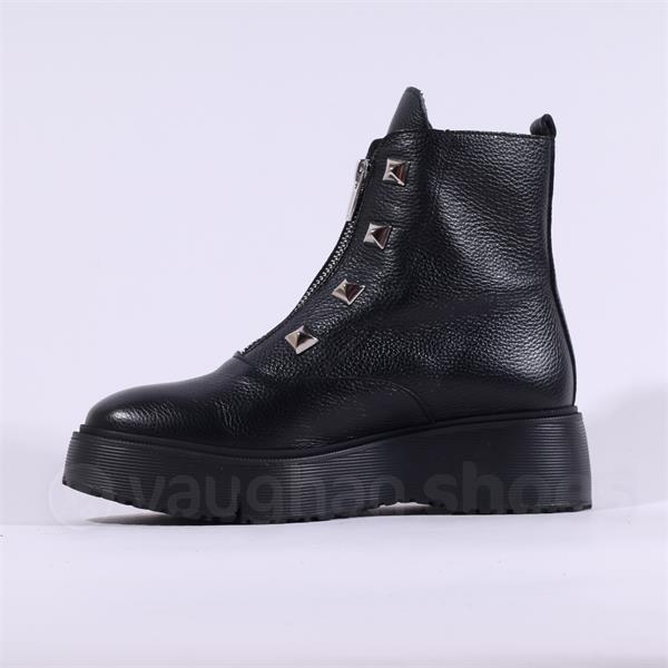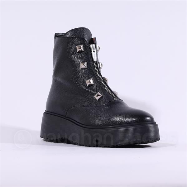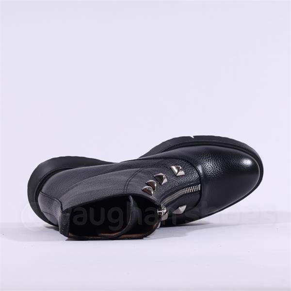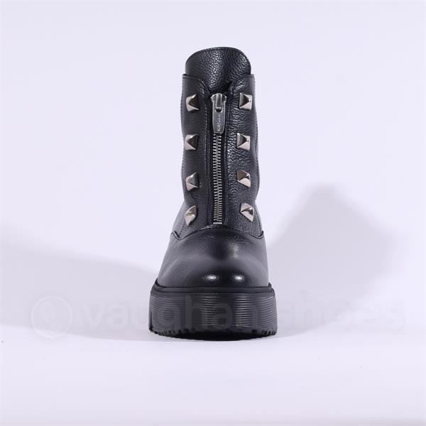 Wonders Bristol Front Zip Stud Boot - Black Leather