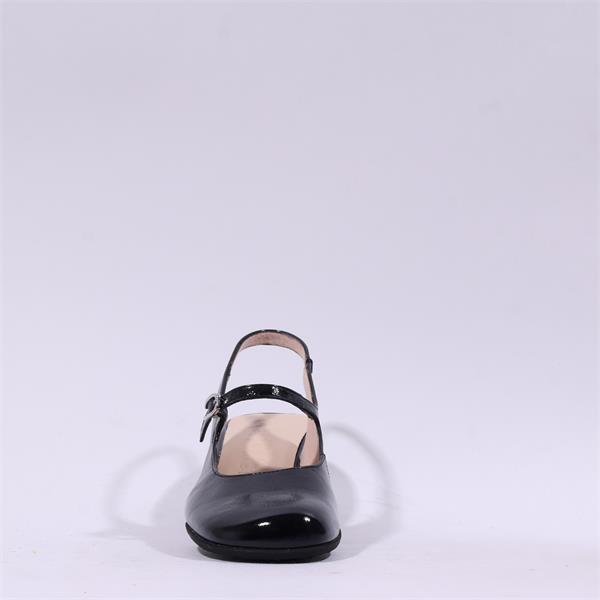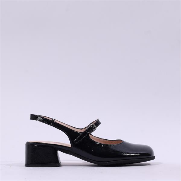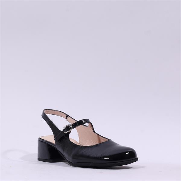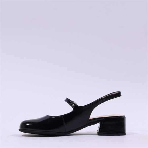 The Wonders Bruma Low Heel Slingback in Black Patent perfectly marries style and comfort for women on the go. Designed with a classic aesthetic, these slingbacks showcase a 4.5cm block heel that provides good elevation without sacrificing stability. Ideal for both casual outings and formal occasions, the Bruma model offers versatility for any wardrobe.
