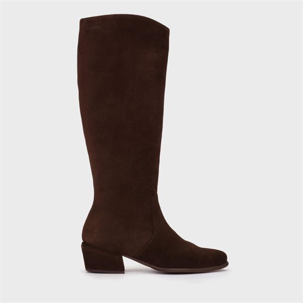 Wonders Fei Low Heel Long Boot - Brown Suede