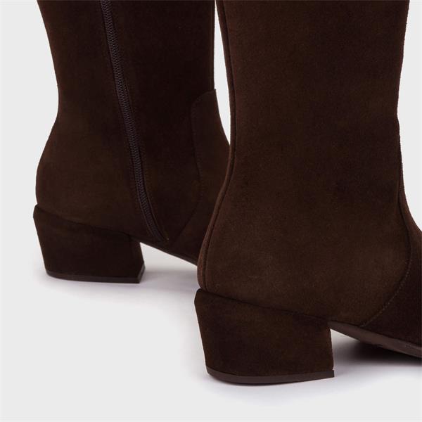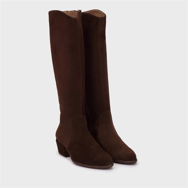 Discover the elegant Wonders Fei Low Heel Long Boot in brown suede, a must-have addition to your footwear collection. These boots not only embody style but also offer exceptional comfort for all-day wear. Featuring a low heel design (5cm), they provide a chic silhouette ideal for various occasions.