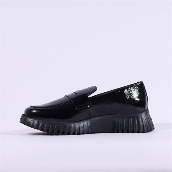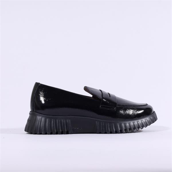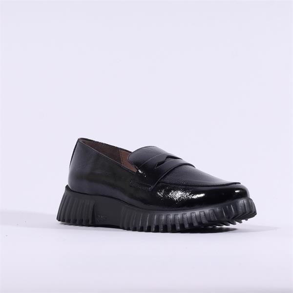 Wonders Flexfly Chunky Slip On Wedge - Black Patent