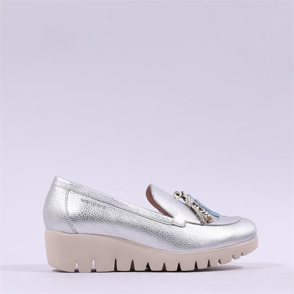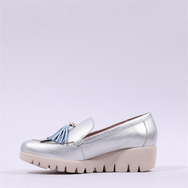 Wonders Fly Tassle Slip On Wedge - Silver
