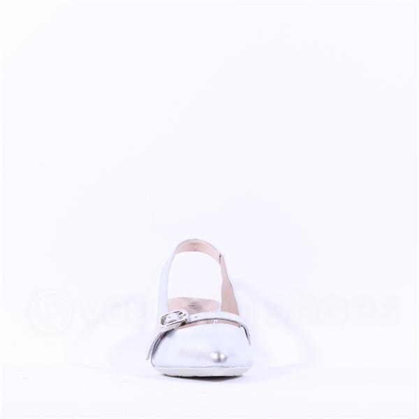 • Wonders Gaia Kitten Heel Strap Slingback - Silver Leather