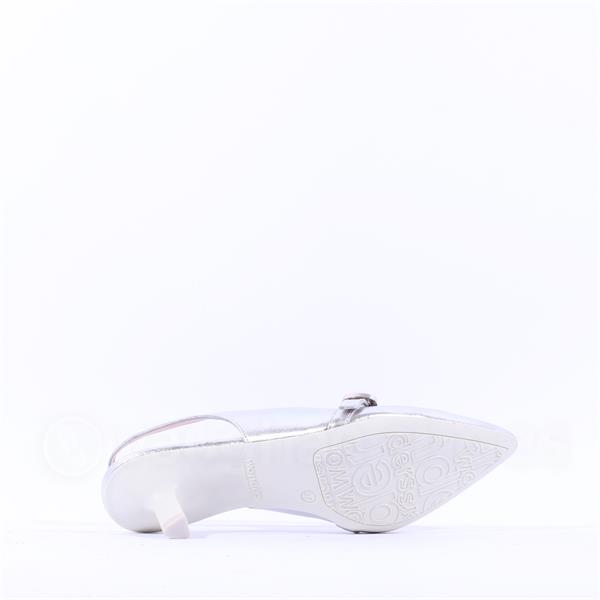 Wonders Gaia Kitten Heel Strap Slingback - Silver Leather