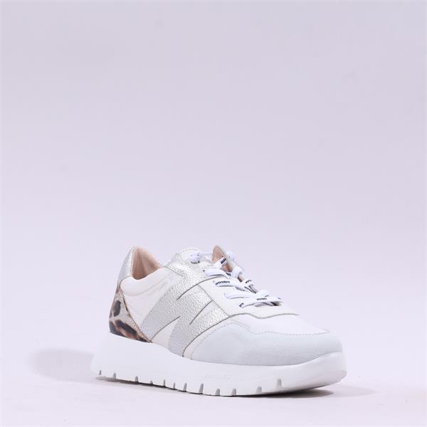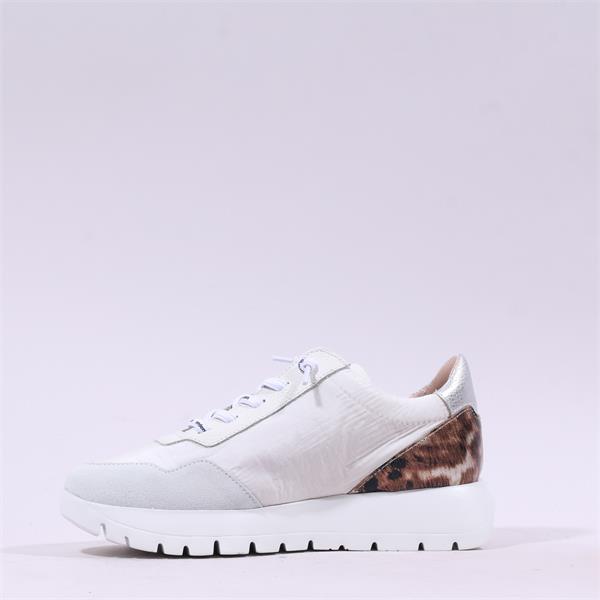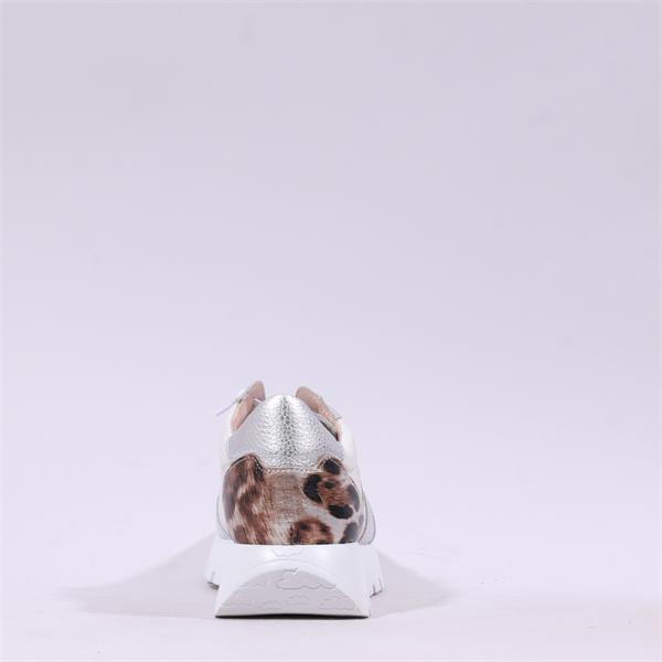 With a heel size of just 2.5 cm, these trainers provide a subtle lift while maintaining a natural stance. The sole is made from 100% expanded EVA, offering lightweight support and flexibility. The standout features include an animal-print leather heel and metallic leather "W" details that enhance the dynamic design.