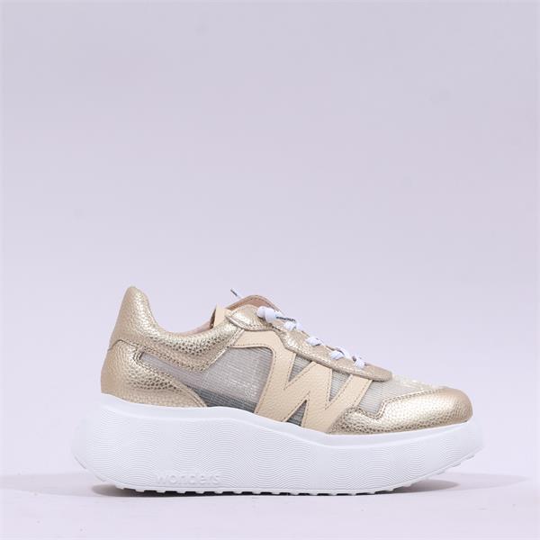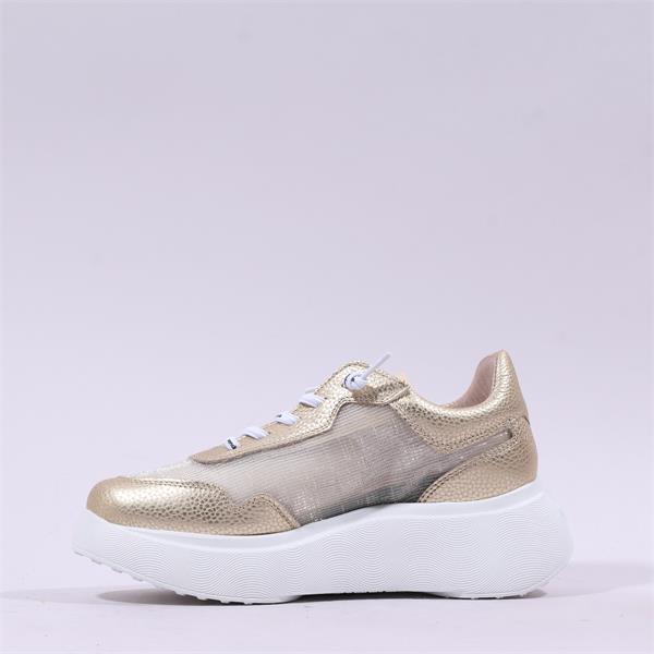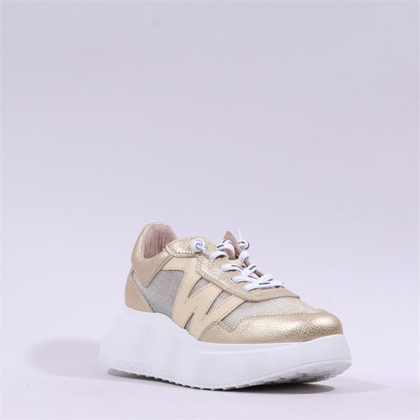 Introducing the Wonders Roma Bungee Platform Trainer in a stunning gold metallic finish. This sleek and modern trainer is designed for both style and comfort, making it the perfect addition to your footwear collection.