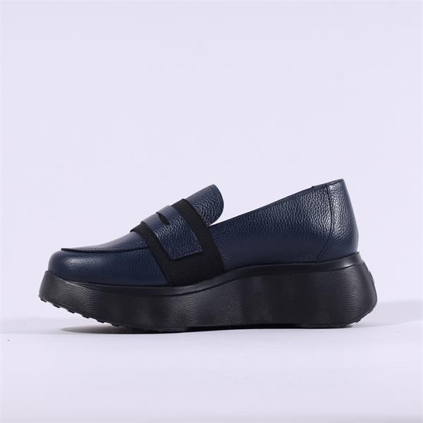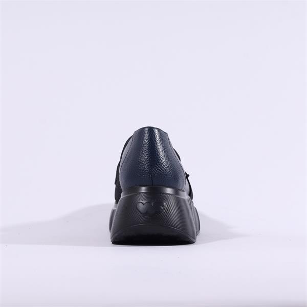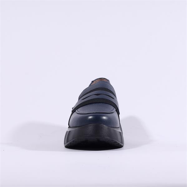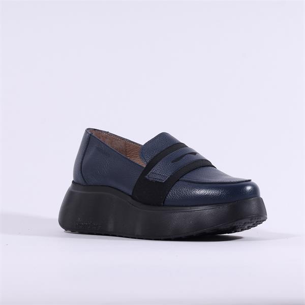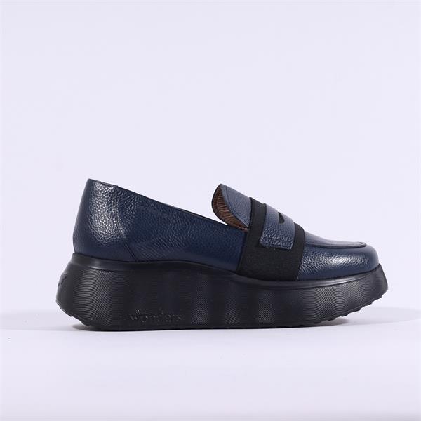 Wonders Roma Platform Slip On Wedge - Navy Leather