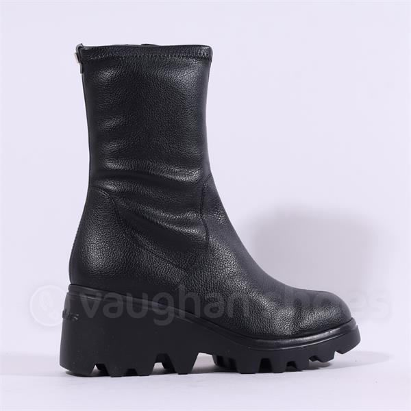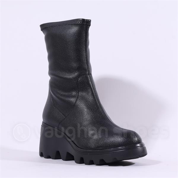 Wonders Toronto Pull On Wedge Heel Boot - Black Leather