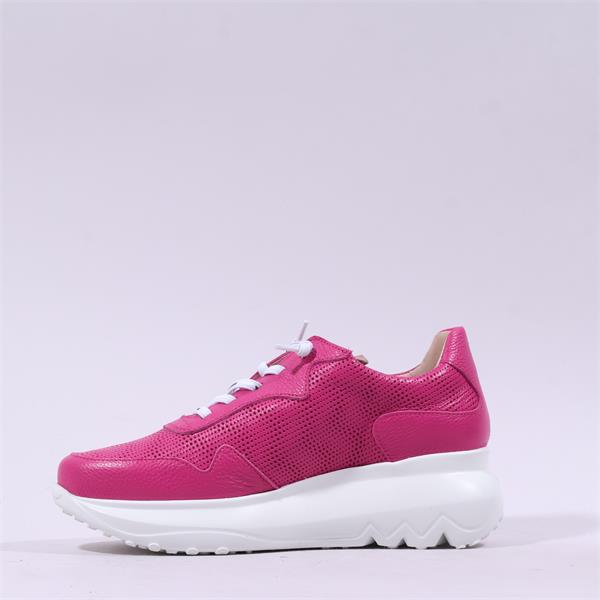 Introducing the Wonders Ultrafly Bungee Wedge Trainer in luxurious Fuchsia Leather, a perfect blend of style and functionality. Designed for the modern individual who values both comfort and chic aesthetics, these trainers are ideal for everyday wear.